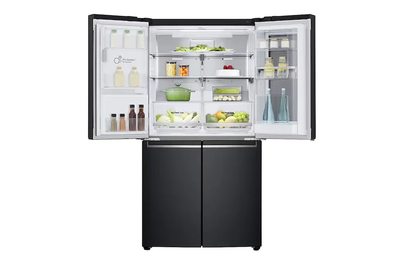 Im Inneren ist der LG GMX945MC9F mit geräumigen Glasablagen, verstellbaren Türfächern und einer großzügigen Frischhaltefach mit Feuchtigkeitsregulierung ausgestattet. Der Smart Inverter Compressor arbeitet leise und effizient, passt sich der Nutzung an und sorgt für eine lang anhaltende, stabile Kühlung mit einem Geräuschpegel von nur 36 Dezibel. Darüber hinaus können Sie mit LG ThinQ™ über Ihr Smartphone die Temperatur aus der Ferne regeln und Benachrichtigungen erhalten, was zusätzlichen Bedienkomfort bietet.