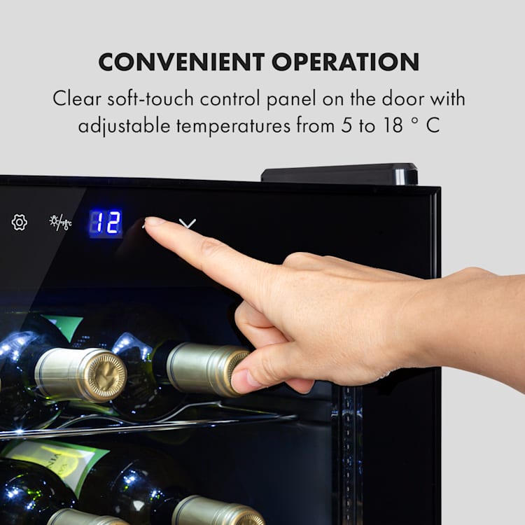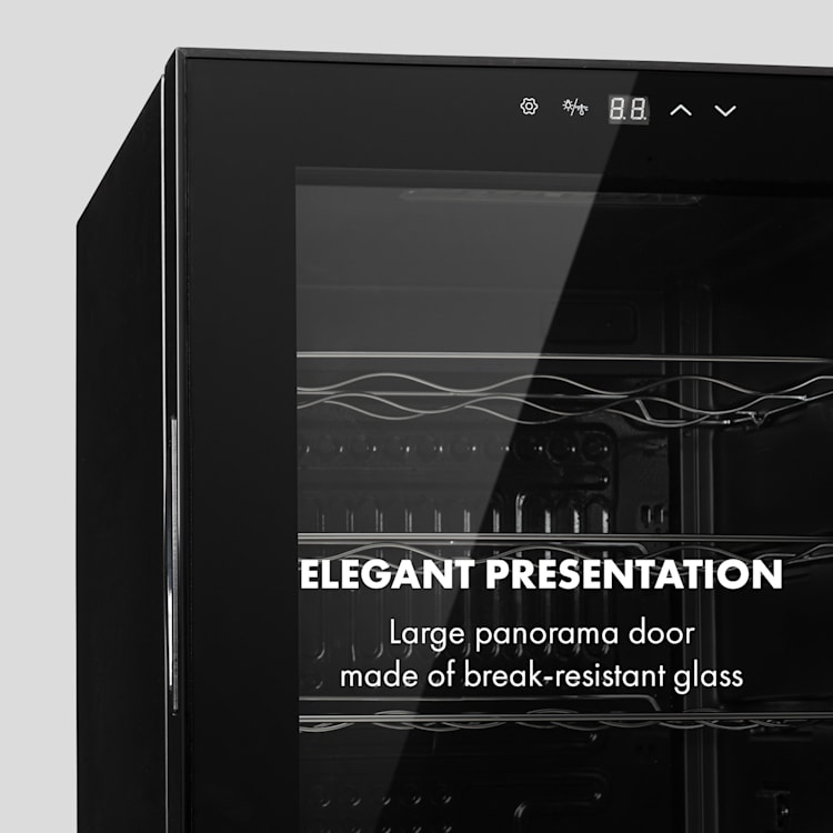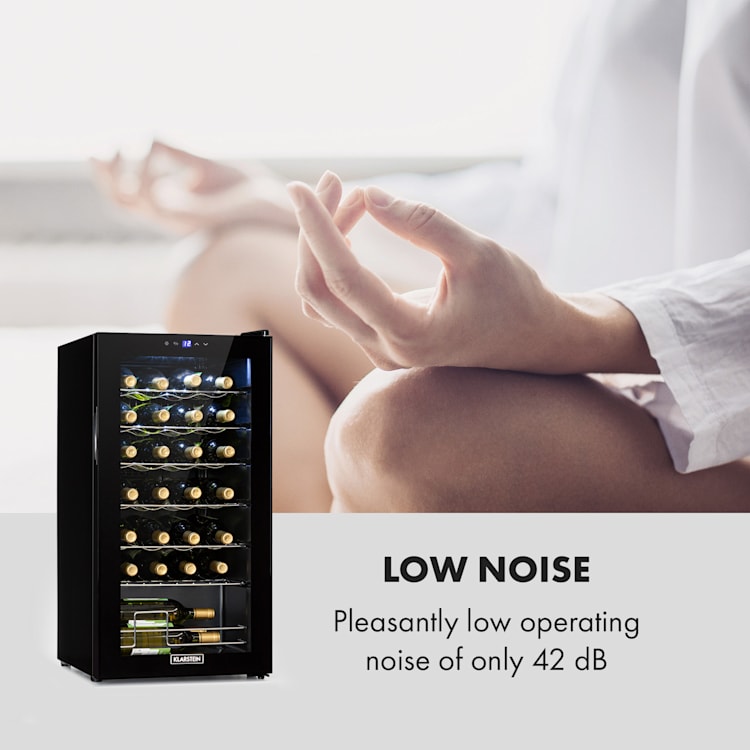 Der Shiraz 28 Uno Weinkühlschrank in Schwarz bietet eine moderne und elegante Lösung für die Lagerung Ihrer Lieblingsweine. Mit einem Fassungsvermögen von 28 Flaschen hält dieser Kühlschrank Ihre Weine perfekt gekühlt, dank der einstellbaren Temperatur, die für optimale Lagerbedingungen sorgt. Das elegante Design mit Glastür verleiht ihm ein luxuriöses Aussehen und macht es einfach, Ihre Sammlung zu präsentieren. Durch seinen leisen Betrieb ist der Shiraz 28 Uno ideal für den Einsatz in Wohnräumen oder im Büro. Genießen Sie Ihre Weine mit diesem funktionalen und attraktiven Weinkühlschrank mit Stil.Spezifikationen