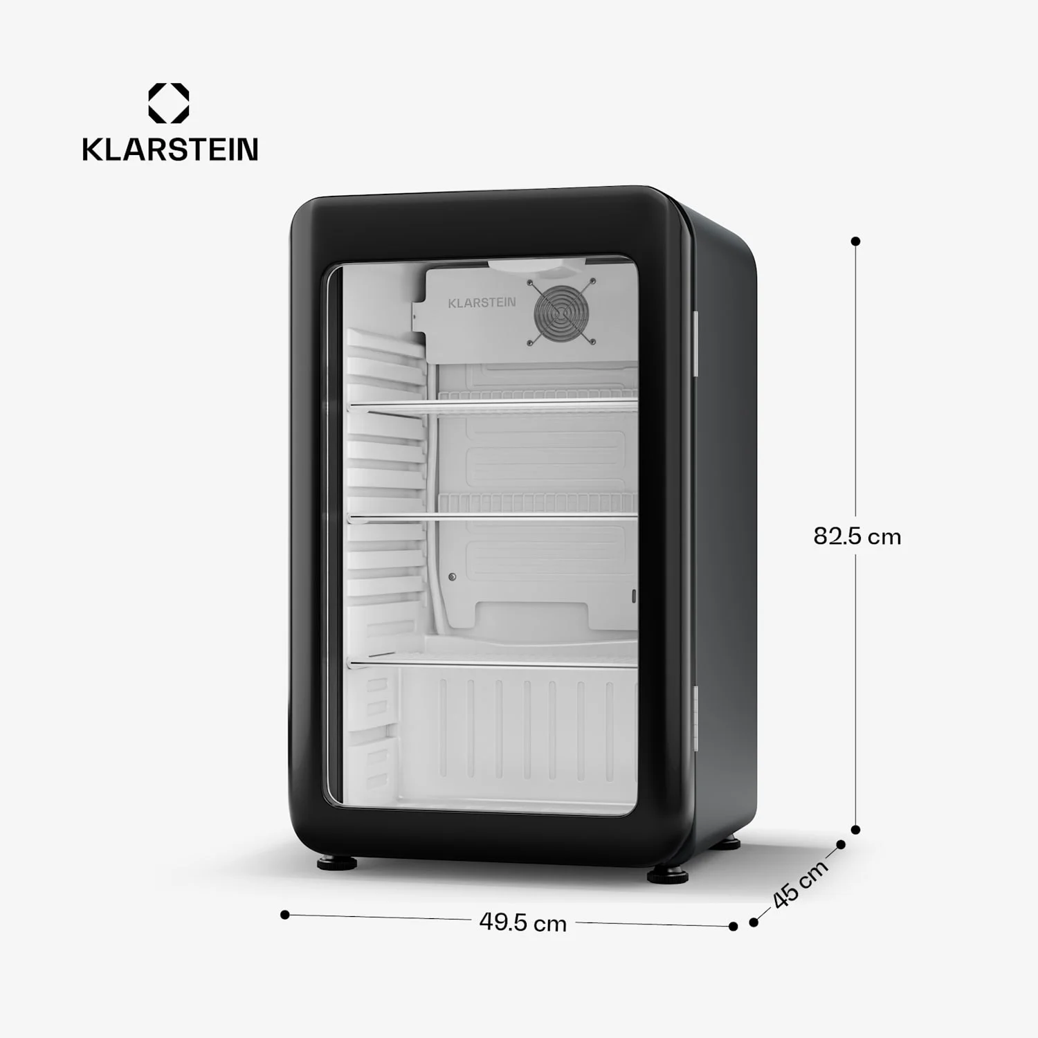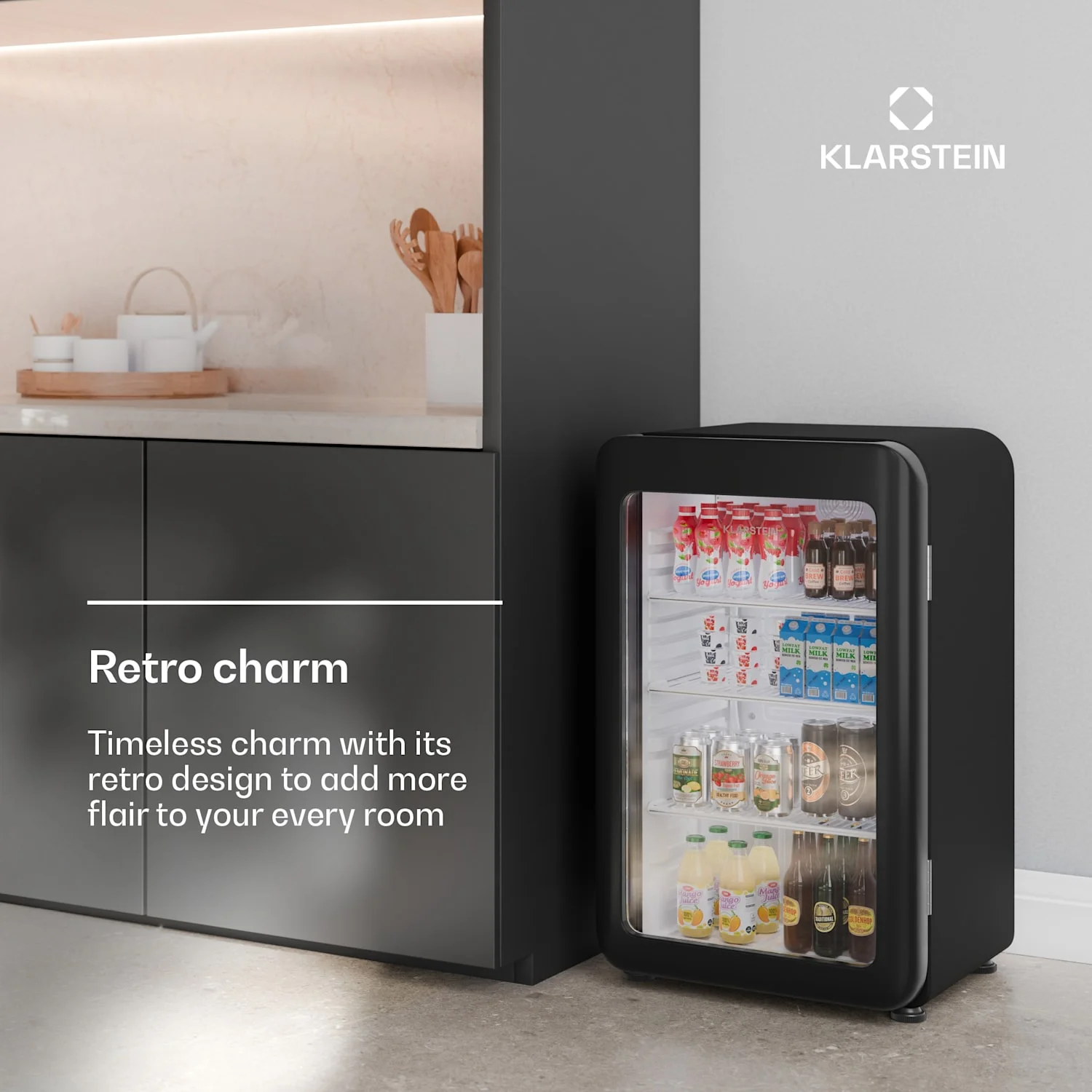 Thanks to its energy efficiency class C, the Klarstein Audrey Evo beverage cooler is not only good for your wallet, but also for the environment. The double-glazed door gives you a quick overview of the contents while simultaneously protecting from sunlight, ensuring a consistent temperature. The stylish retro look with its vibrant colors and elegant shapes gives the refrigerator a timeless charm that makes it a decorative eye-catcher in your home.