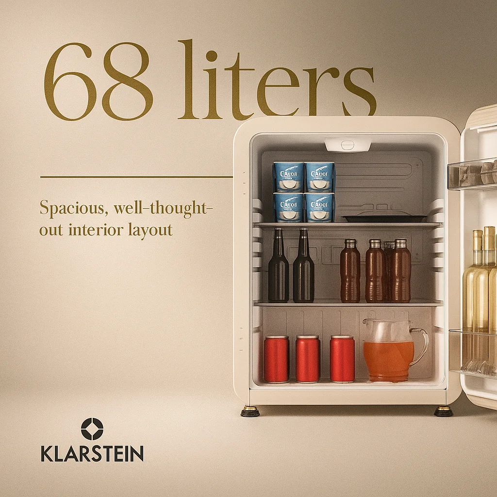 With its energy-efficient operation, quiet performance, and timeless look, the Klarstein Audrey Evo mini fridge is a practical and stylish addition to any interior.