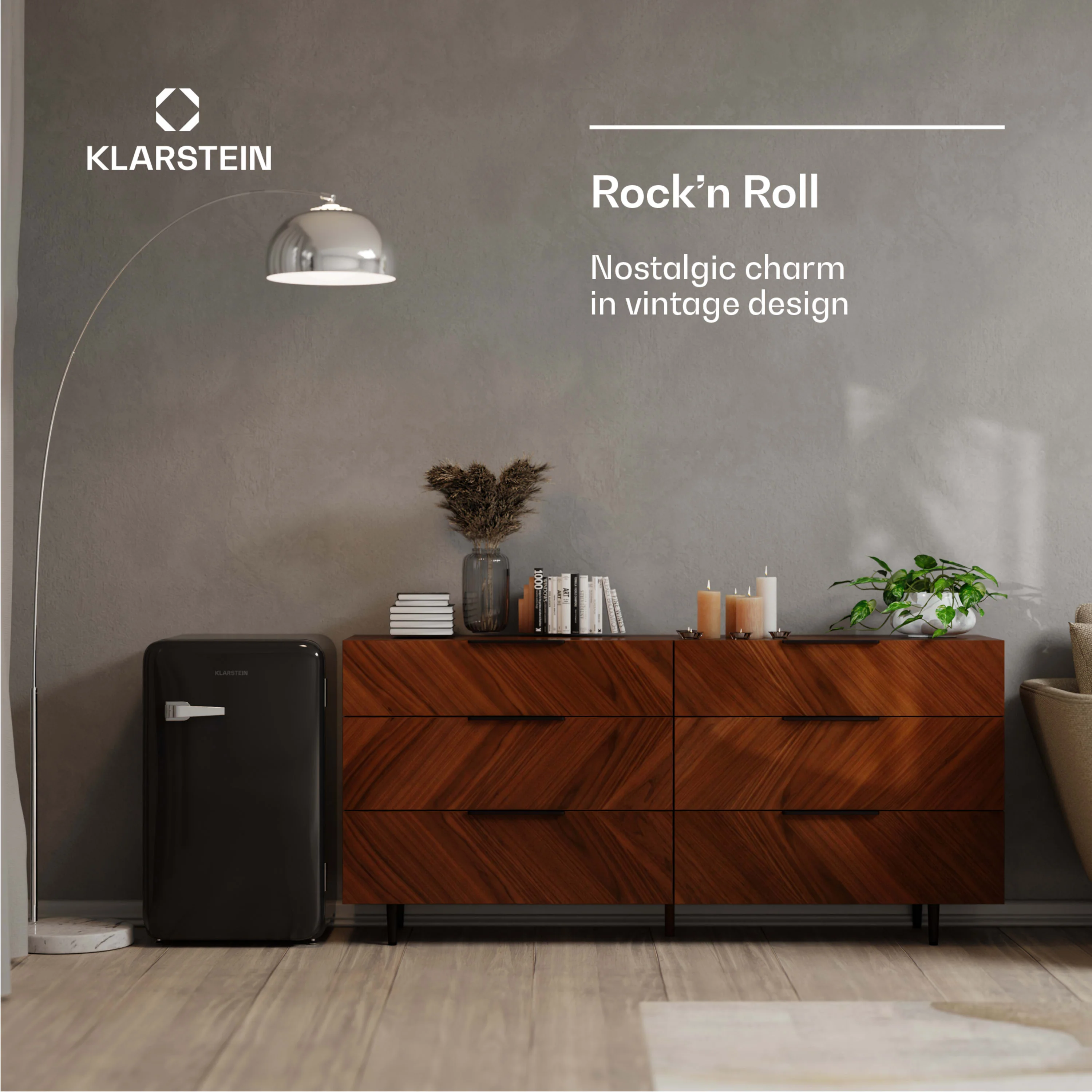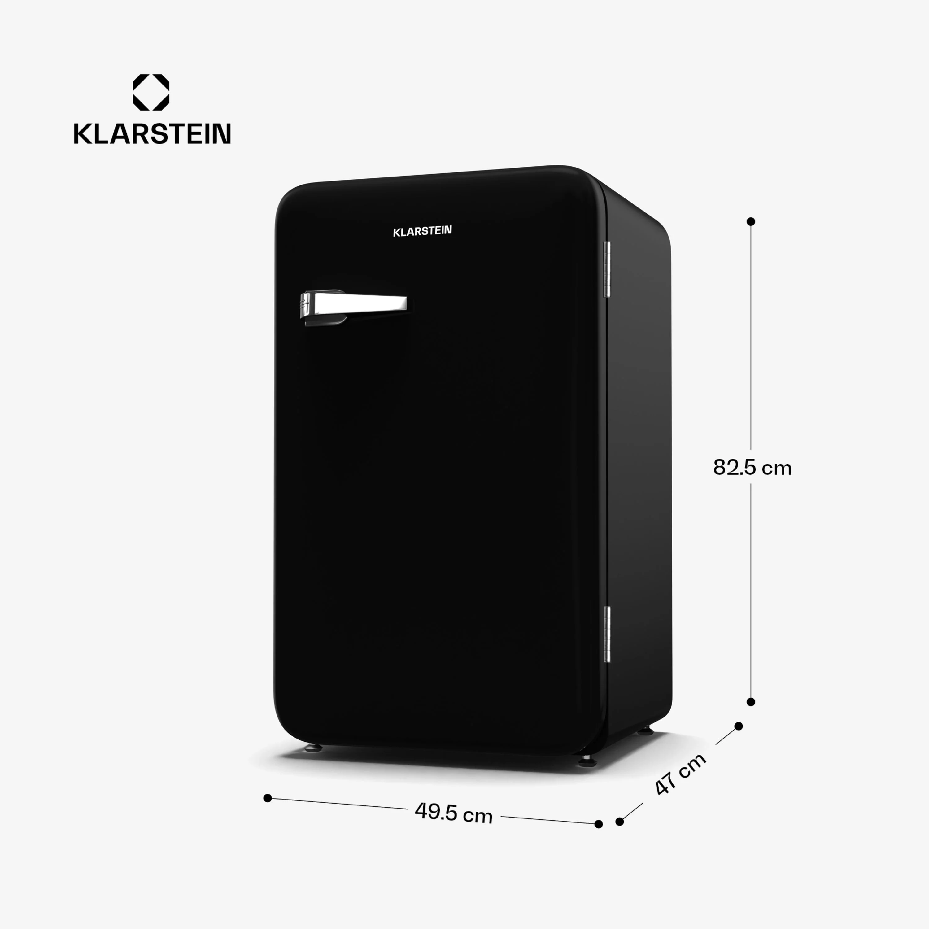 The Klarstein Audrey Evo mini fridge combines nostalgic elegance with contemporary efficiency. Thanks to its spacious 90-liter capacity and quiet operation, it is the ideal addition to stylish living rooms, offices, hotel rooms, or party rooms.