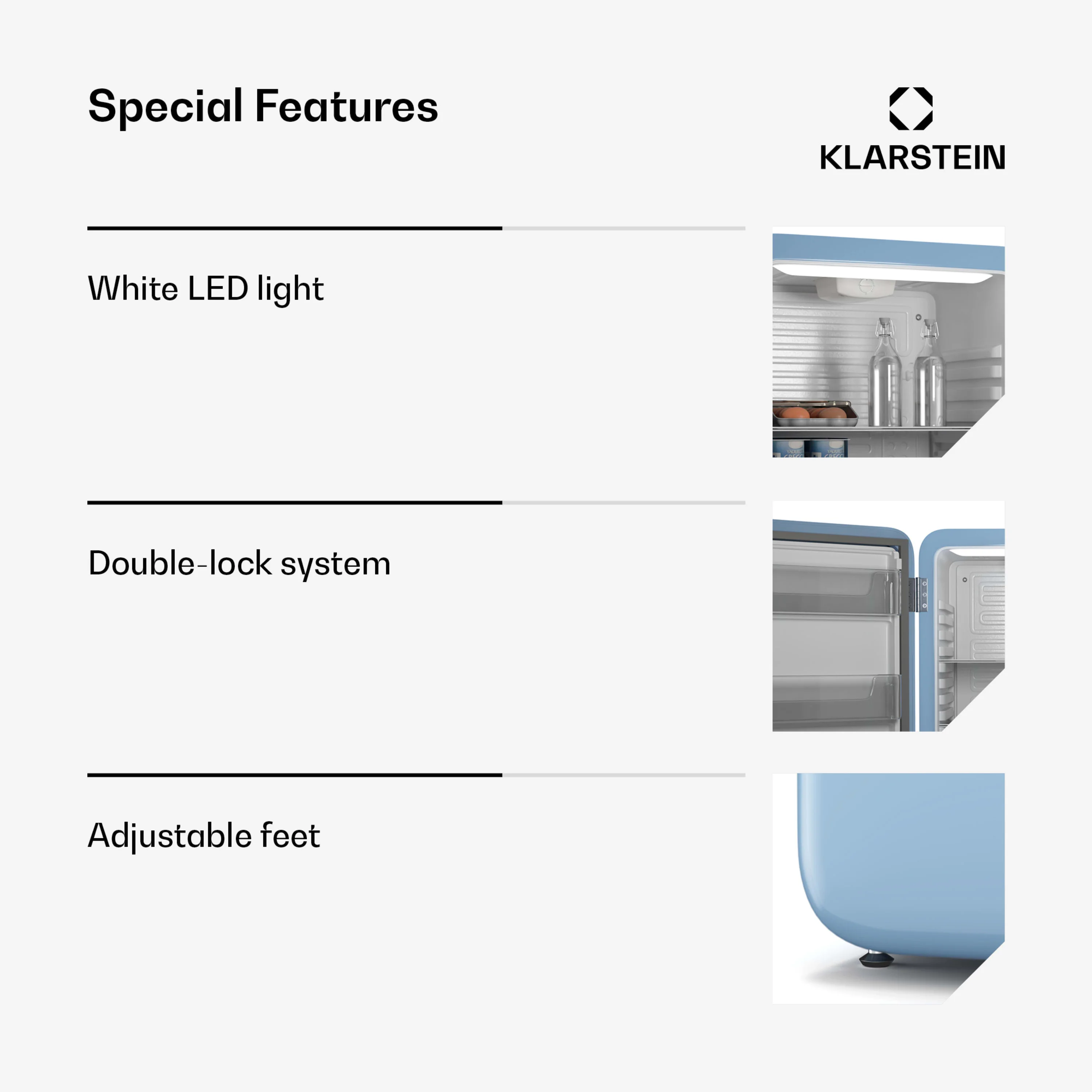 Choose the Klarstein Audrey Evo mini refrigerator: compact, quiet, and stylish – the perfect balance between design and functionality.