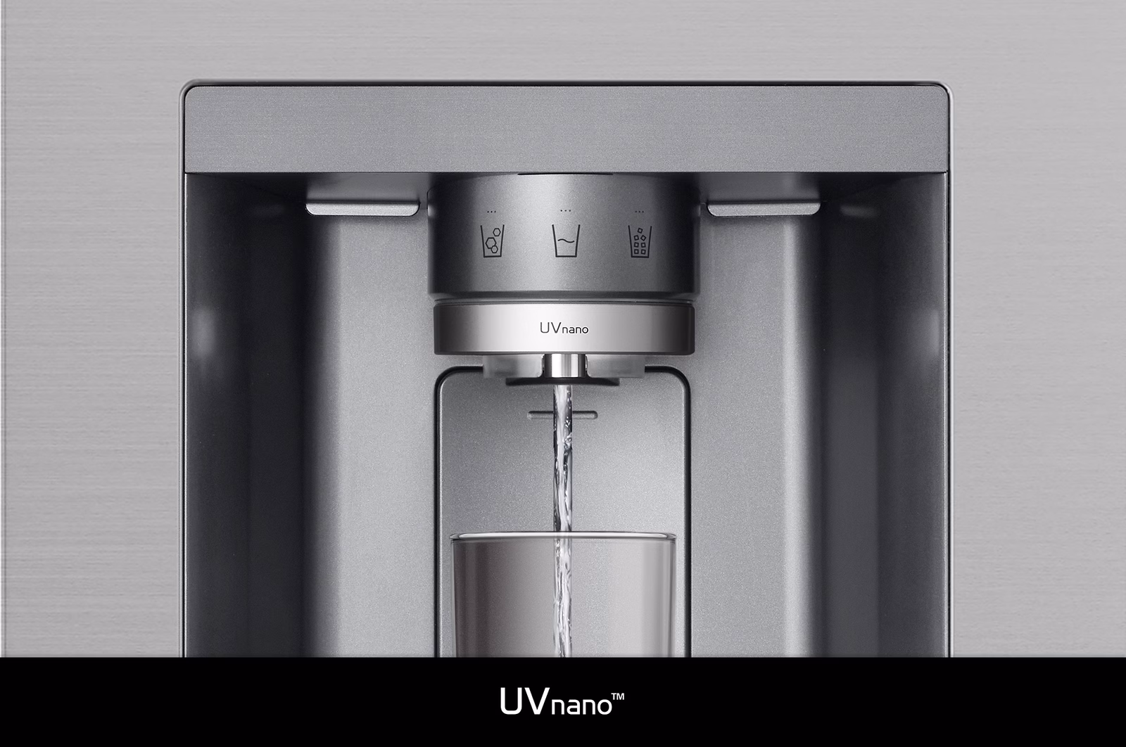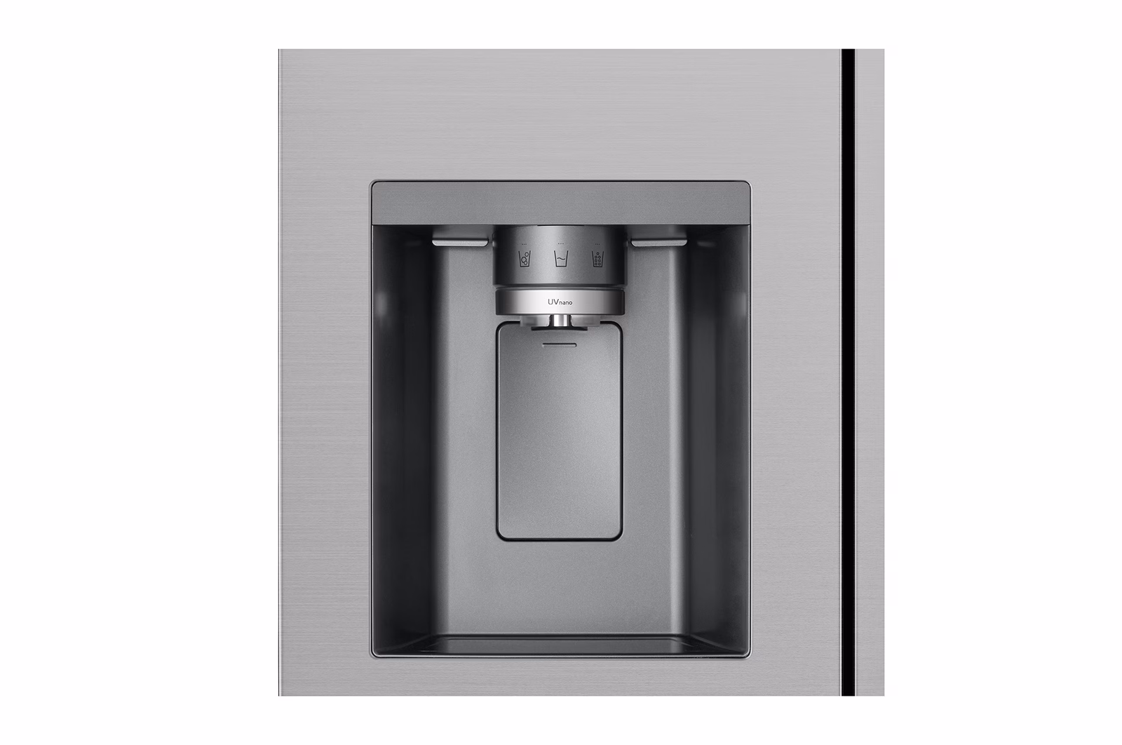 This LG refrigerator has a large capacity, yet it is very practical for a family of five. The appearance is sleek and modern, and the UV light at the dispenser looks stylish. The stainless steel doors with square handles are fairly resistant to fingerprints. One downside of the model is that the sides of the refrigerator are not finished in the same material as the front, so it is actually more suitable for built-in placement.