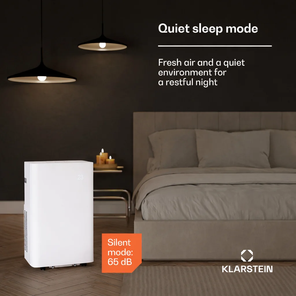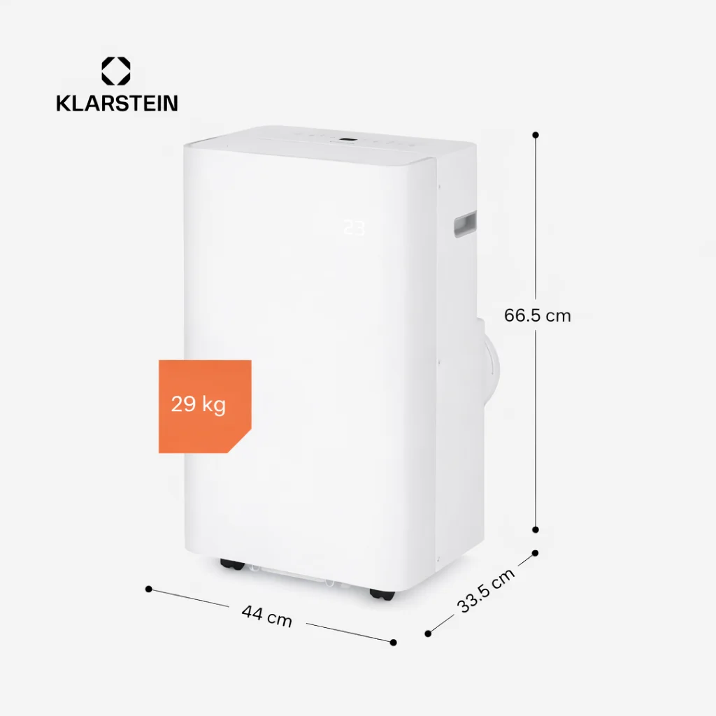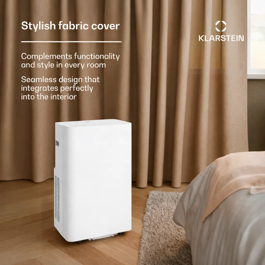 De draagbare airco AireLux van Klarstein biedt een indrukwekkende combinatie van hoge koelprestaties en modern design, ideaal voor ruimtes tot 30 m². Dankzij de eenvoudige bediening via app of stemassistent kan het ruimteklimaat moeiteloos worden geregeld.
