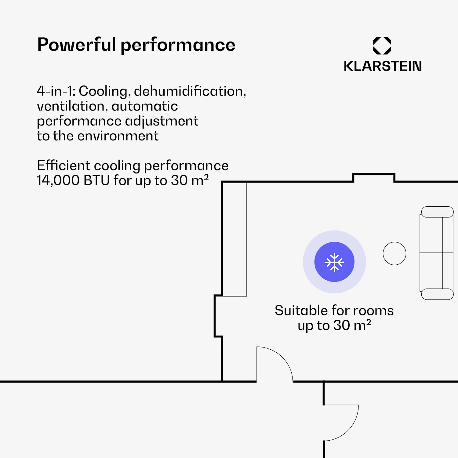 Veelzijdigheid: Vier standen voor optimale aanpassing aan het ruimteklimaat.