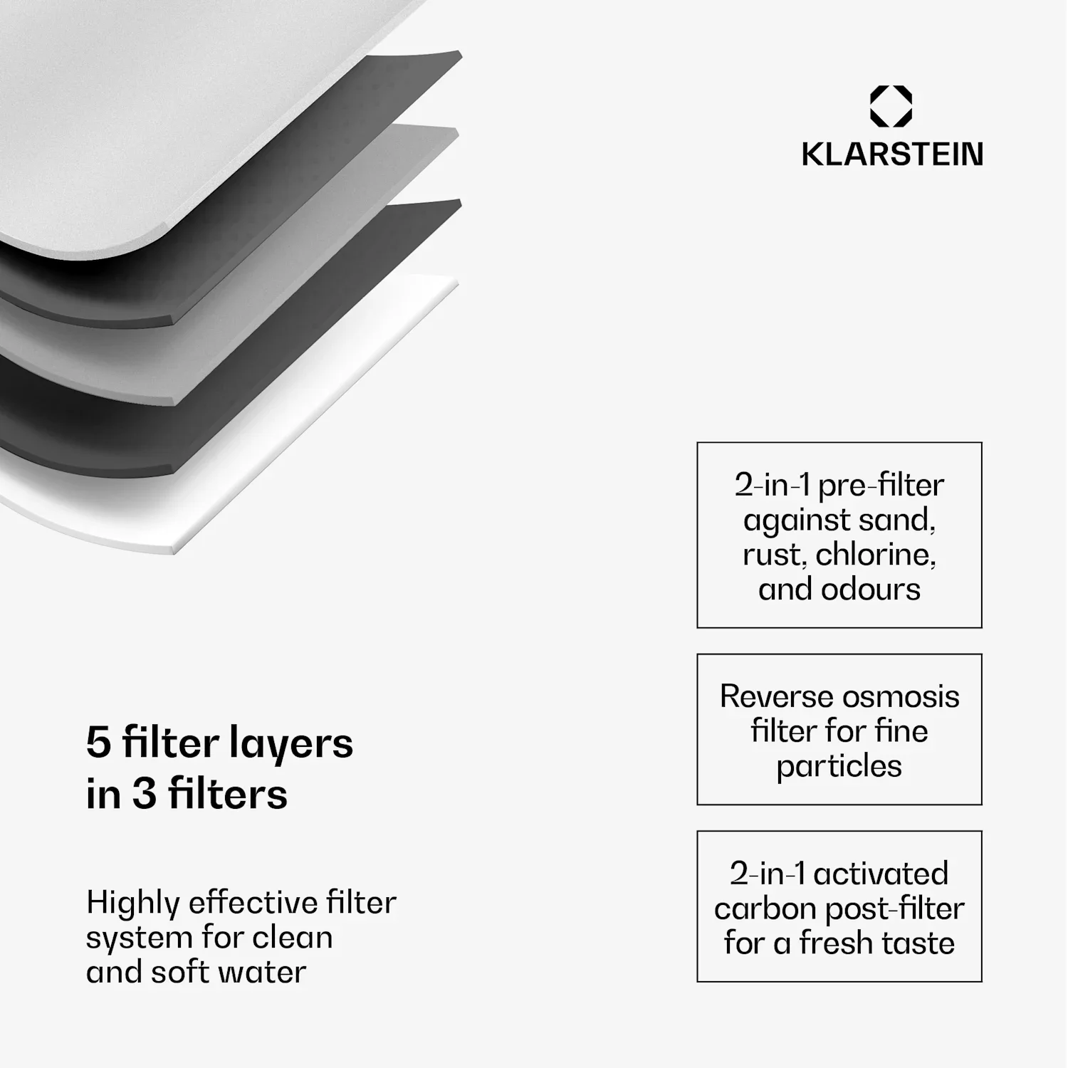 De Klarstein AquaFina 6L waterzuiveraar revolutioneert waterbehandeling met zijn innovatieve omgekeerde osmose systeem en extra functies. Met een driefasig filtersysteem en vijf reinigingsniveaus zorgt hij voor fris en smaakvol water. Het systeem bestaat uit een 2-in-1 voorfilter, een omgekeerde osmose membraan en een 2-in-1 nafilter.