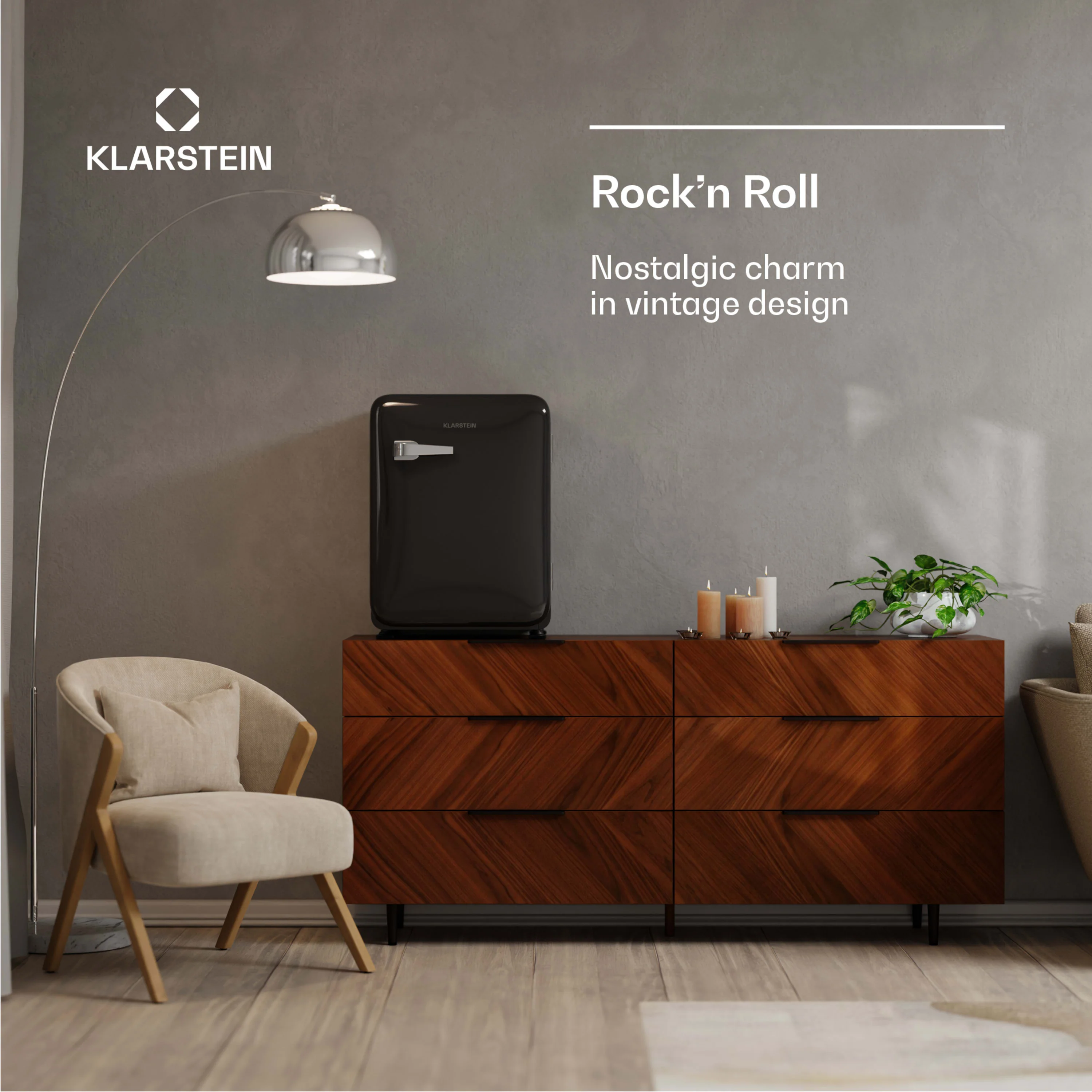 Het vintage design met afgeronde hoeken en glanzende afwerking brengt een vleugje nostalgische elegantie in elke kamer. Binnenin zorgt het krachtige compressorkoelsysteem voor betrouwbare prestaties en een nauwkeurige temperatuurregeling van 0 tot 10 °C via de mechanische thermostaat.