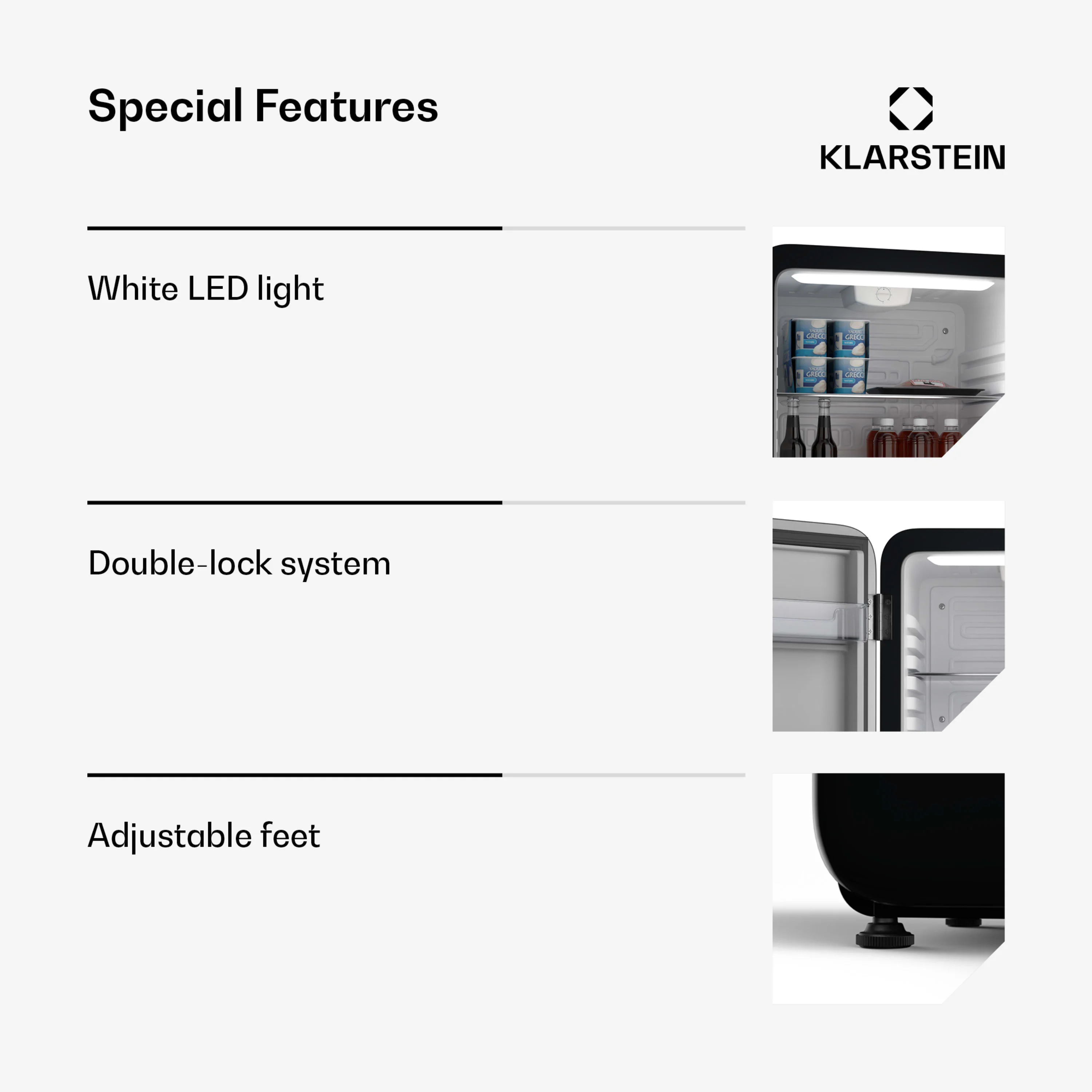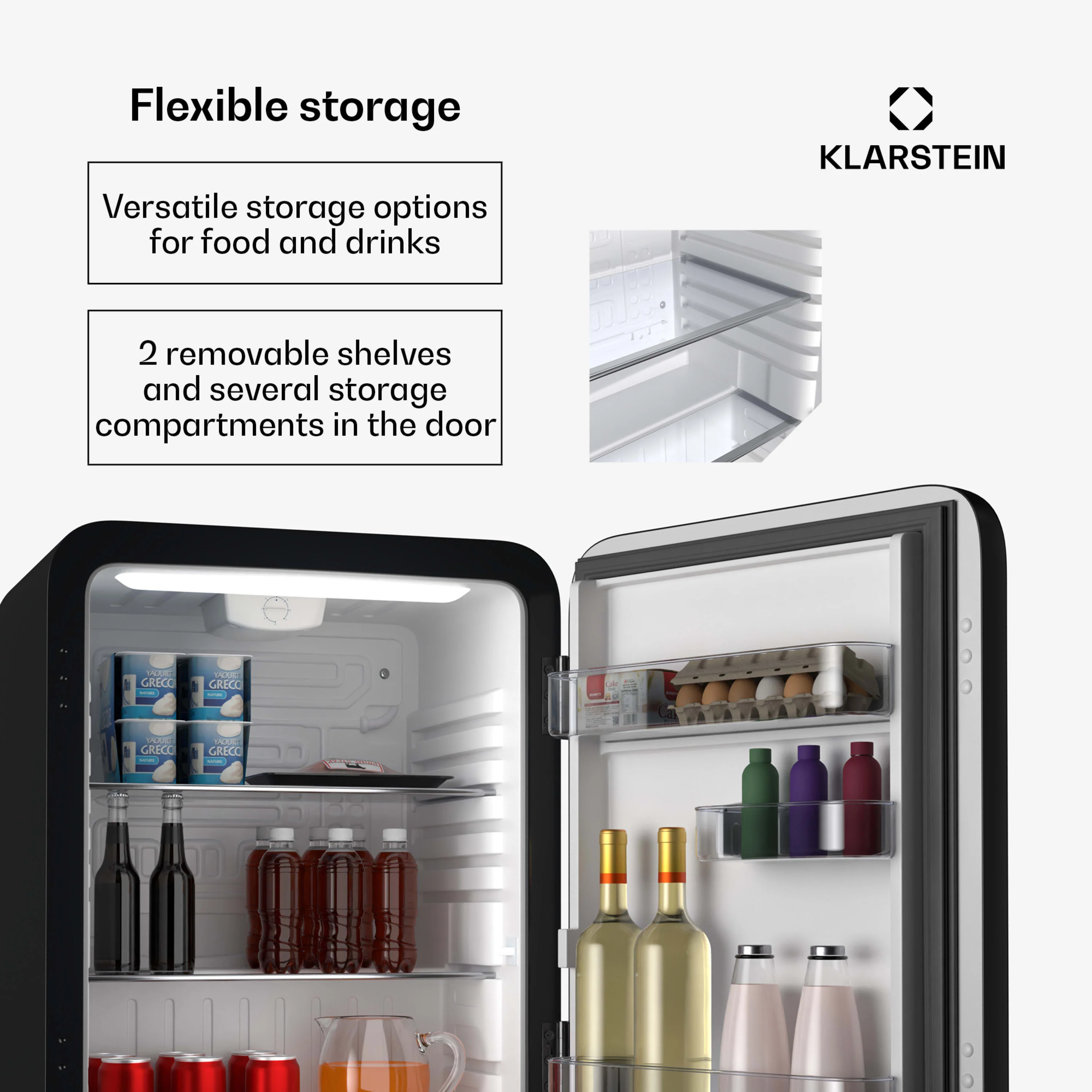 Met zijn energiezuinige werking, stille prestaties en tijdloze look is de Klarstein Audrey Evo mini koelkast een praktische en stijlvolle toevoeging aan elk interieur.