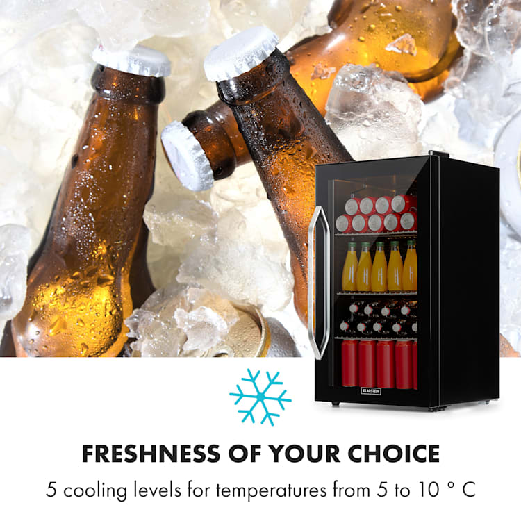 Goed gekoeld verfrist beter: de Klarstein Beersafe XXL Onyx is een compacte drankkoelkast met een inhoud van 80 liter, perfect voor het efficiënt bewaren van je favoriete dranken en etenswaren. Drie metalen roosters zorgen voor flexibele opslagruimte, zodat je alles georganiseerd kunt houden.